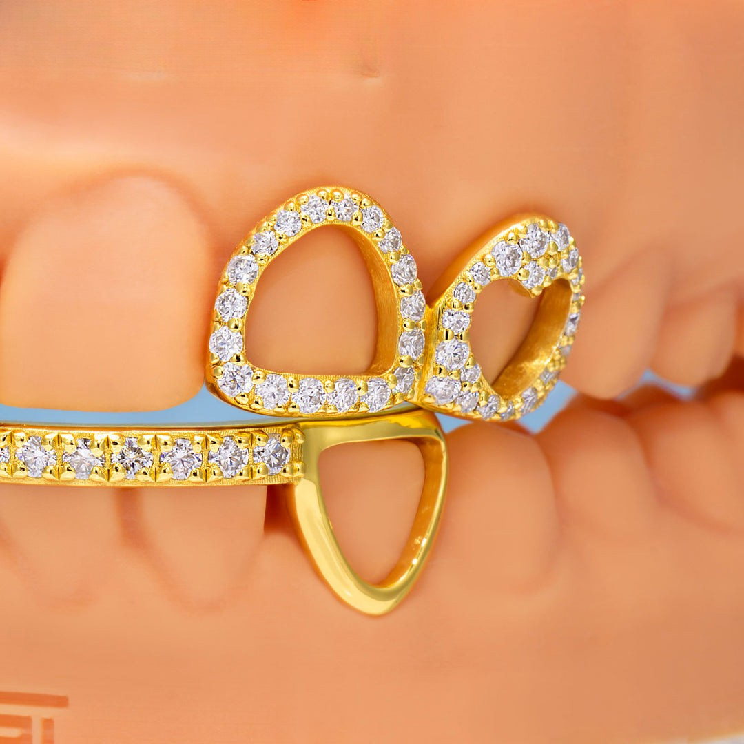 Top 4 Open Face With Bottom Bar Grillz - White / 4 Top / Moissanite